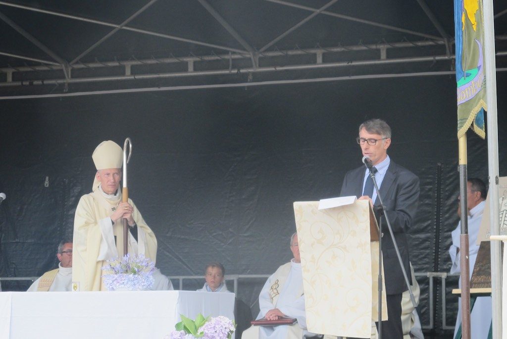 Mgr D’ornellas nous a dit quelques mots. L’association colombophile de la baie a fait un lâcher de colombes et de pigeons.