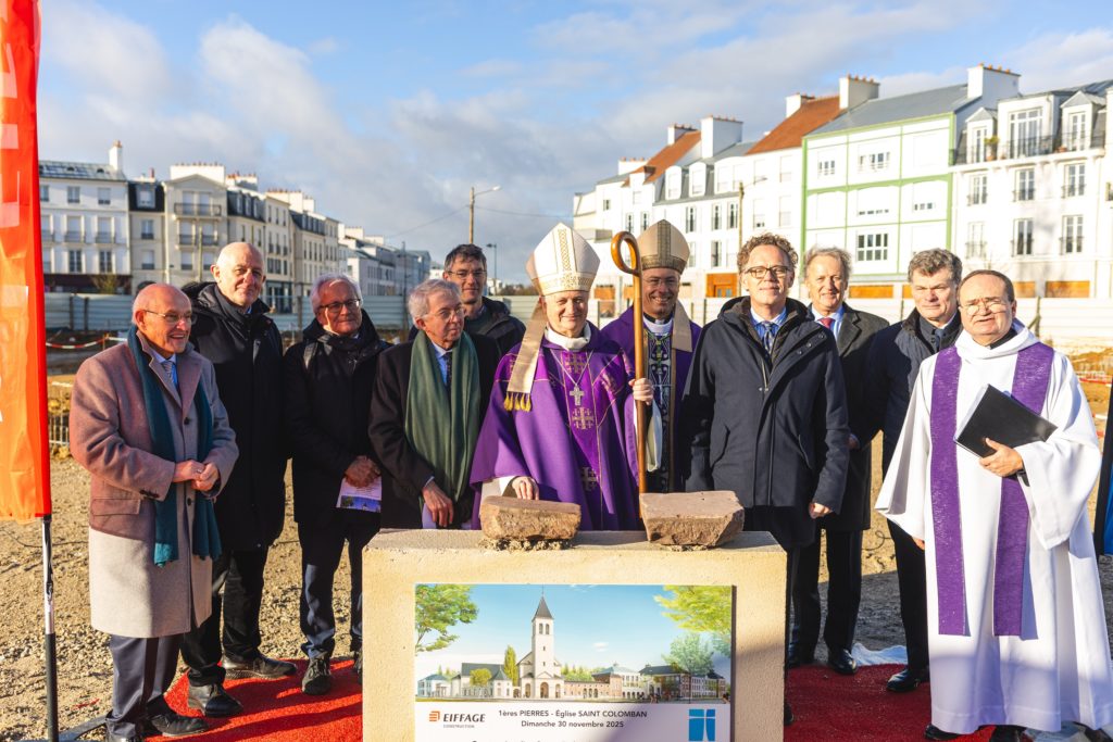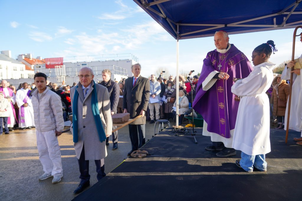 Le froid était vif mais le soleil brillait sur l’emplacement du futur parvis de l’église. Près de 400 personnes étaient réunies dès 10 heures pour assister à la pose par Mgr Jean-Yves Nahmias, évêque de Meaux, des deux premières pierres de la future église Saint-Colomban. Cette initiative missionnaire marque le démarrage d’un chantier de dix-huit mois. La nouvelle église, dessinée par l’architecte italien Pier Carlo Bontempi, est destinée à devenir un lieu de prière, de rassemblement et de mission pour les habitants du territoire. Le centre ecclésial répondra à la croissance démographique de la région et au renouveau spirituel perceptible depuis plusieurs années.